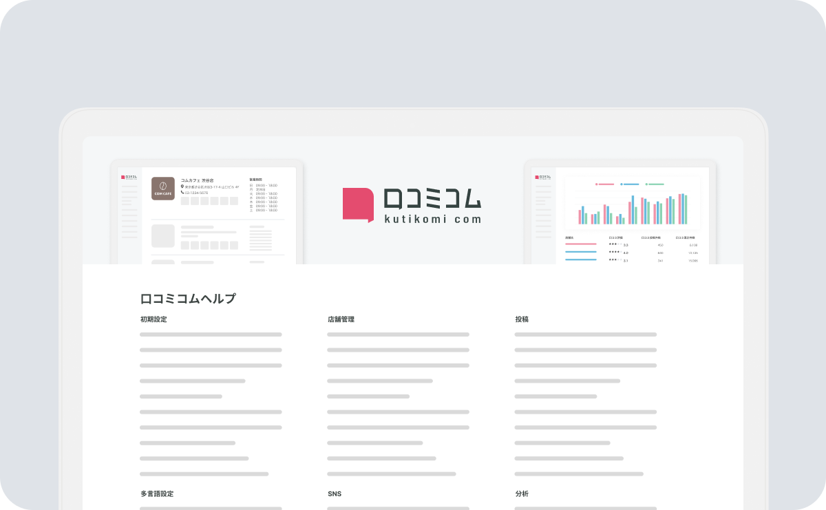 スムーズに口コミコムをご利用いただけるよう、様々なサポートを設けています。