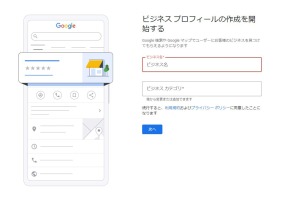 「ビジネスプロフィールの作成を開始する」画面に遷移したら、「ビジネス名」と「ビジネスカテゴリ」を入力して「次へ」をクリックしてください。