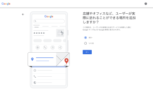 次に「店舗やオフィスなど、ユーザーが実際に訪れることができる場所を追加しますか?」という質問が表示されるので、「はい」を選択します。