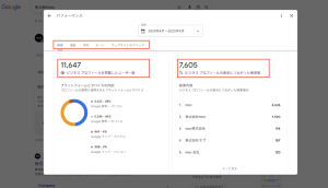 Googleビジネスプロフィールには、自店舗・自施設の情報がGoogle上でどれくらい見られているか、ユーザーがどのような行動を取ったかを確認できる「パフォーマンスデータ」機能があります。