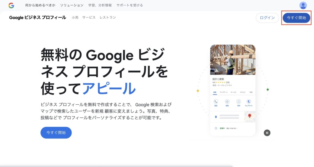Googleアカウントを作成したら、次はGoogleビジネスプロフィールにアクセスします。