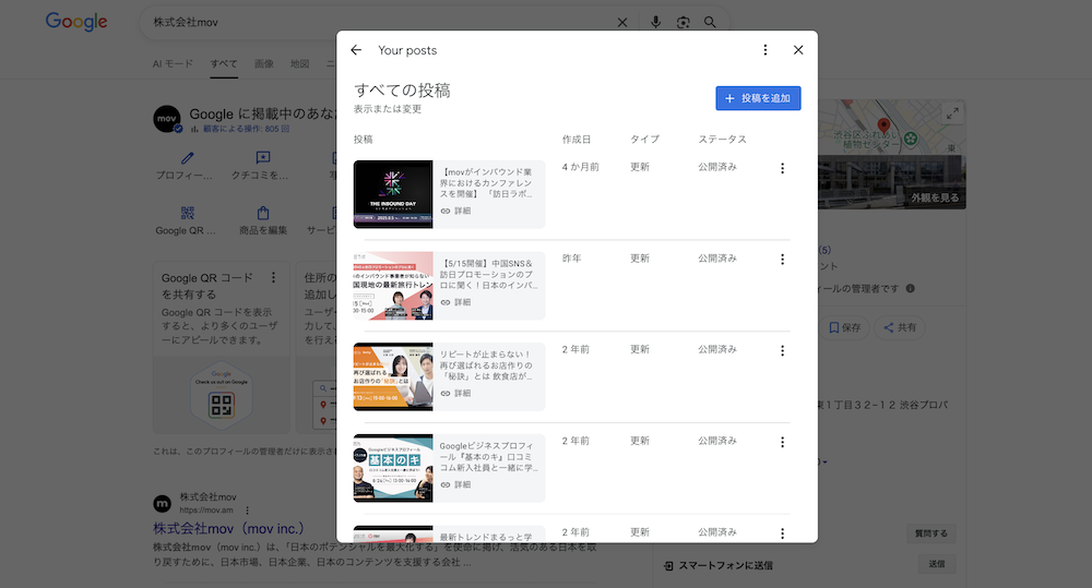 Googleビジネスプロフィールの管理画面の「投稿」から投稿可能