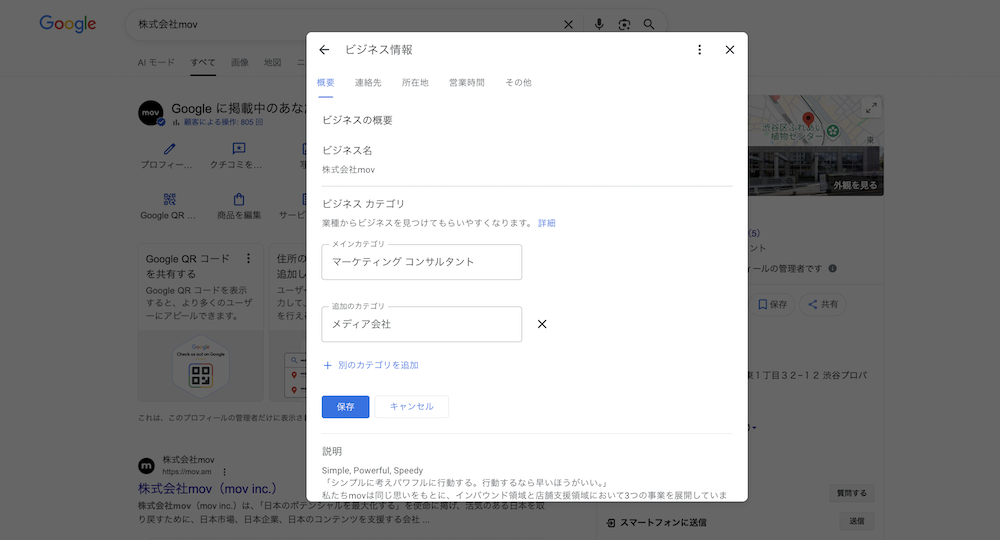 このビジネスカテゴリが最適なカテゴリに設定されていない場合もあり、修正、設定することでキーワードの関連性を強化したり、紐付けたりできます。