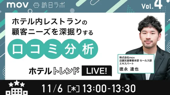 【11/6開催】ホテルトレンドLIVE! Vol.4 〜ホテル内レストランの顧客ニーズを深掘りする口コミ分析〜
