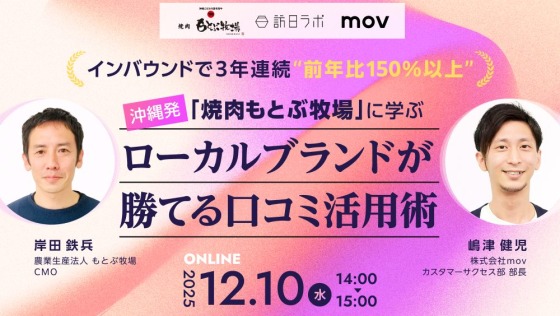 【12/10開催】インバウンドで3年連続“前年比150%以上”!沖縄発「焼肉 もとぶ牧場」に学ぶローカルブランドが勝てる口コミ活用術