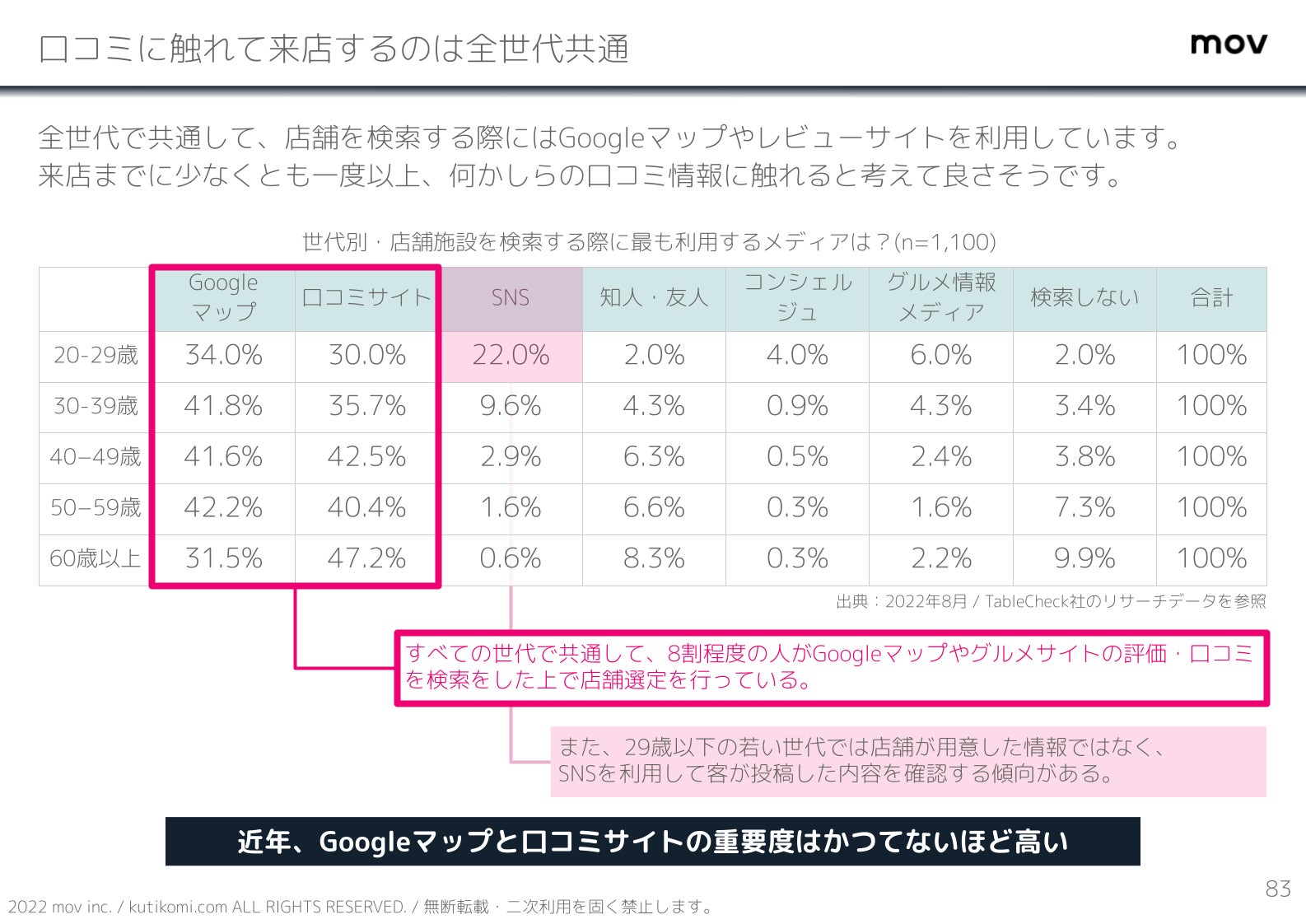 店舗検索に利用するメディアそして、Googleマップやグルメサイトには、口コミという形で「お客様の正直な意見・感想」のデータが蓄積されています。