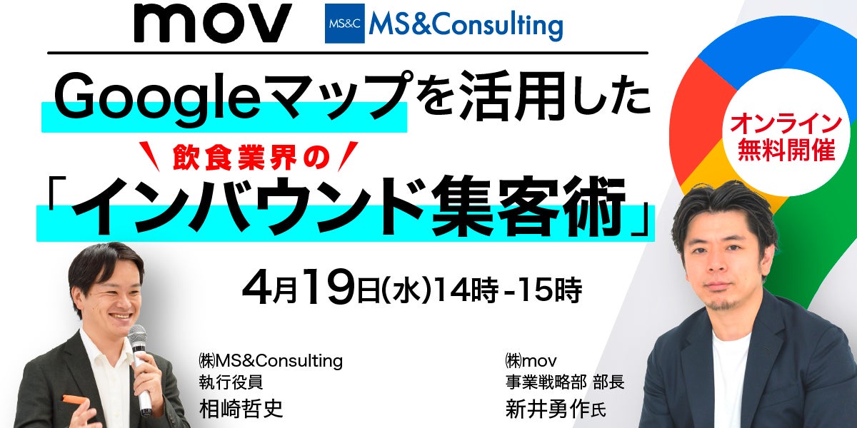 業務提携の第一弾として、MS&Cと共催で4月19日(水)に最新の「【インバウンド本格化!】Googleマップを活用した飲食業界のインバウンド集客術」を参加費無料で開催いたします。最新の集客ノウハウだけでなく、MEOに関する2023年までの潮流の解説なども含めてご紹介いたします。よろしければ是非ご参加ください。