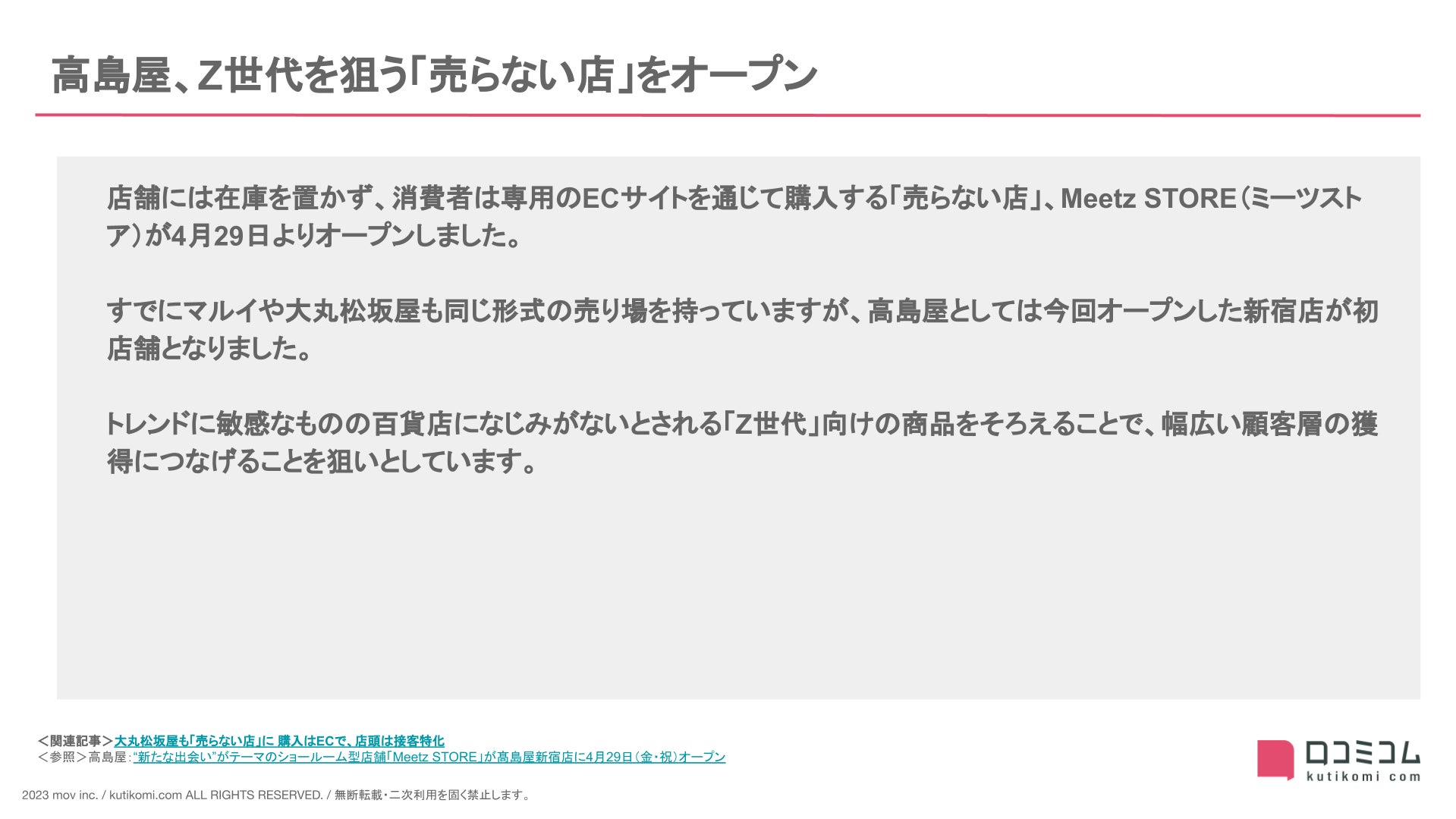 - 4月:高島屋、Z世代を狙う「売らない店」をオープン