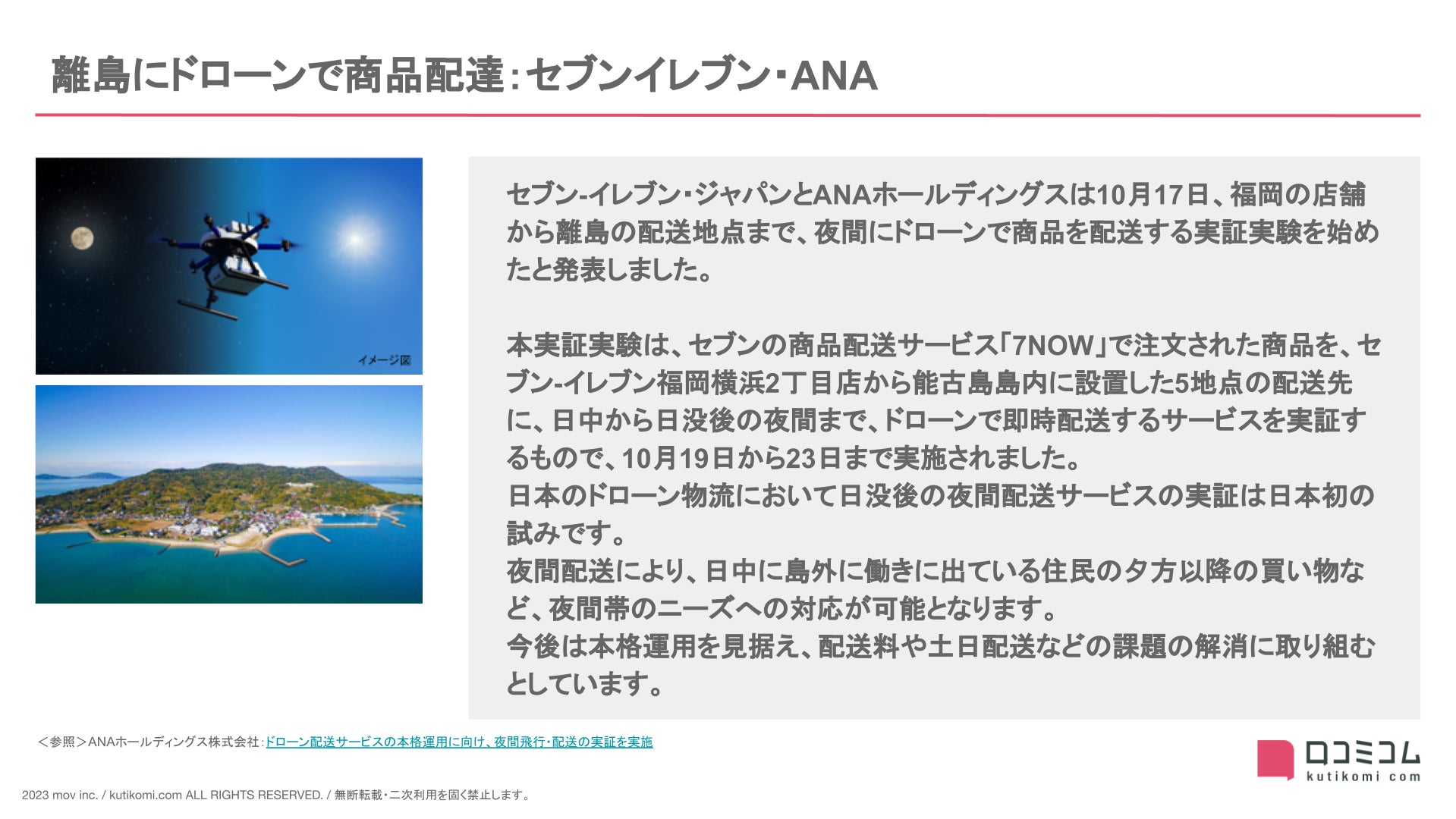 - 10月:離島にドローンで商品配達 / セブンイレブン・ANA