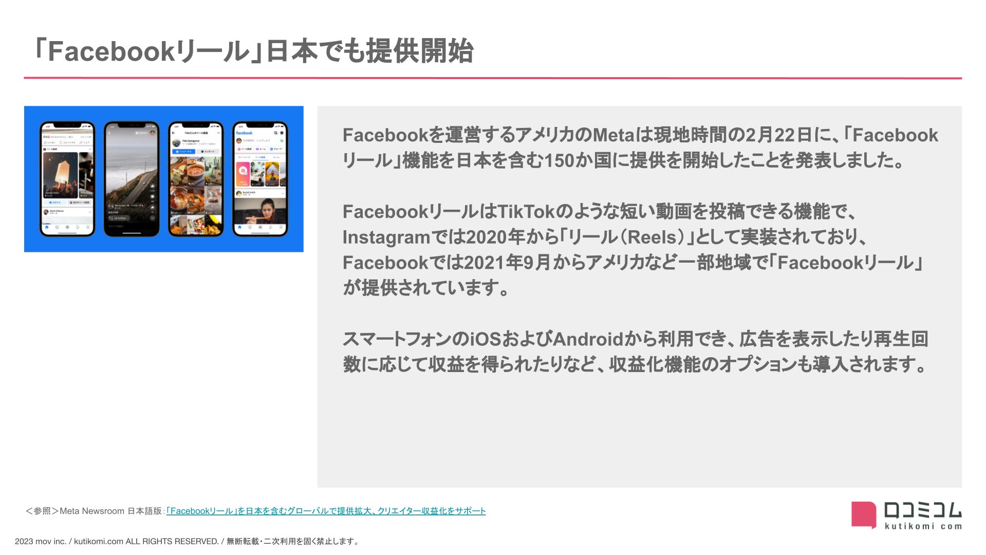 - 2月:「Facebookリール」日本でも提供開始