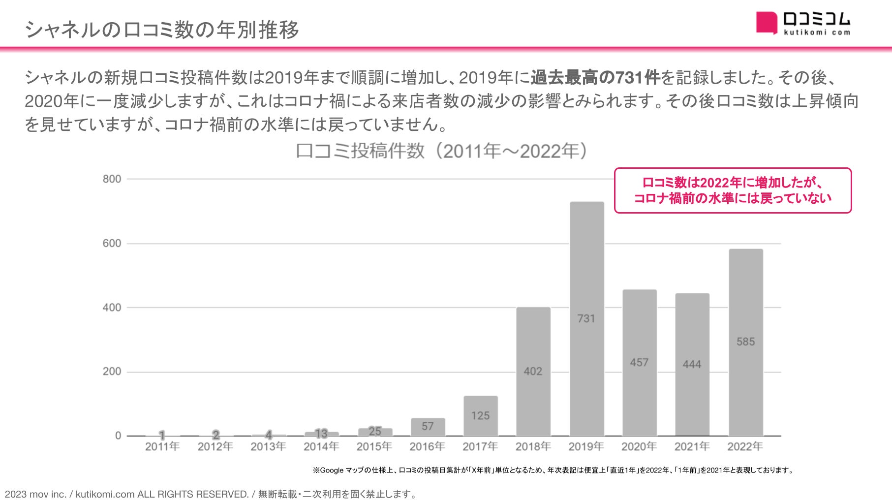 シャネルの口コミ数の年別推移