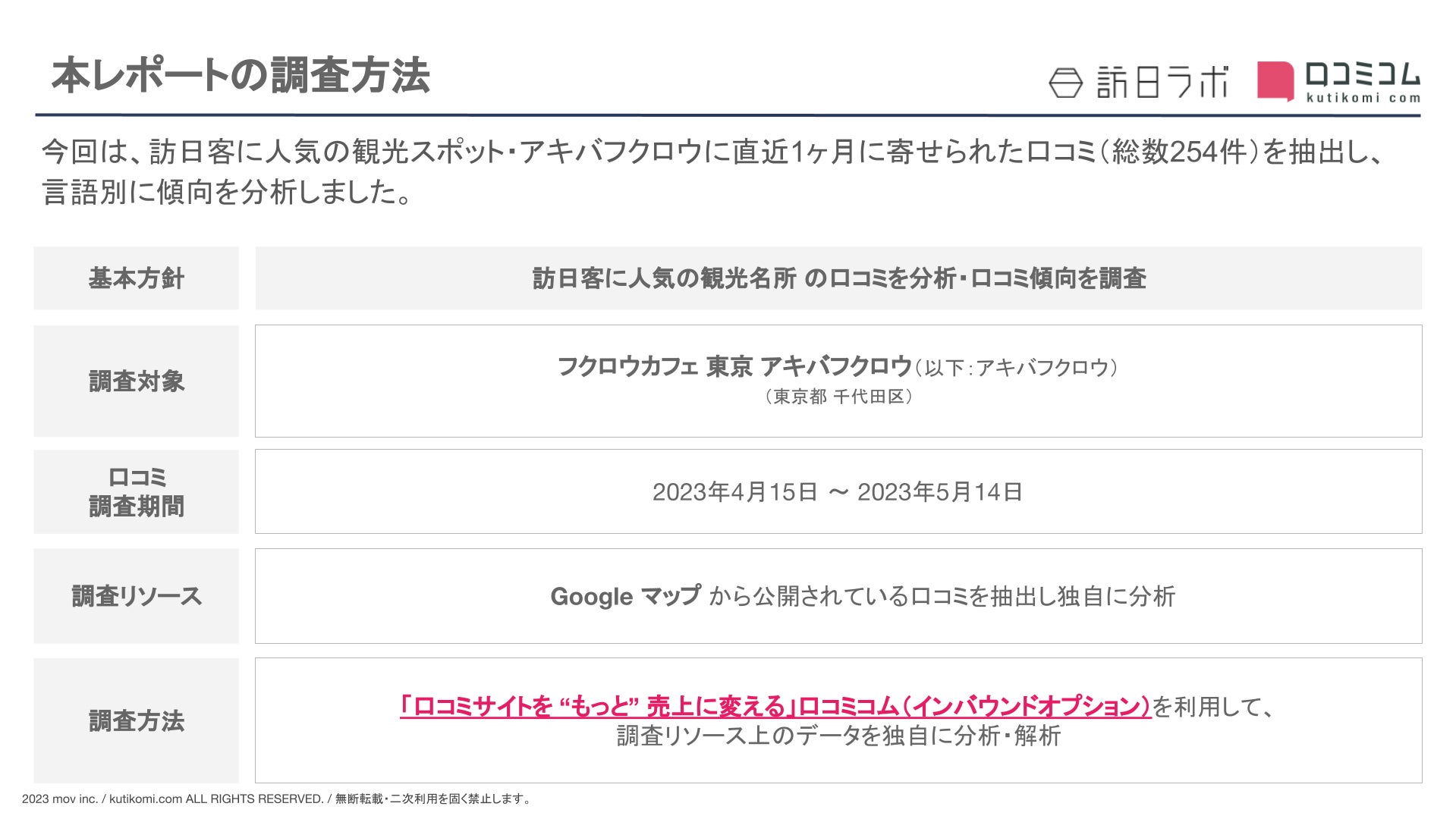 口コミサイトを”もっと”売上に変える店舗支援SaaS「口コミコム」及び国内最大級メディア『訪日ラボ』を運営する株式会社mov(代表取締役:渡邊 誠、本社:東京都渋谷区、以下mov)では、『口コミコム』の分析機能を用いてレポートを作成しています。