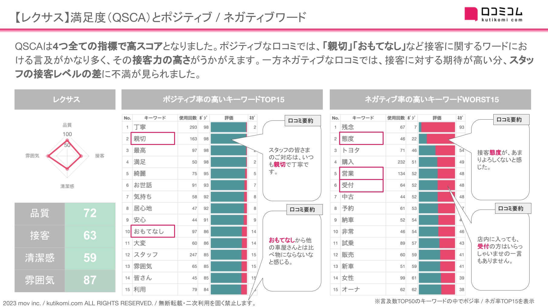今回は、このAI解析を用いて【レクサス】のQSCA・ポジ / ネガキーワードを確認しました。