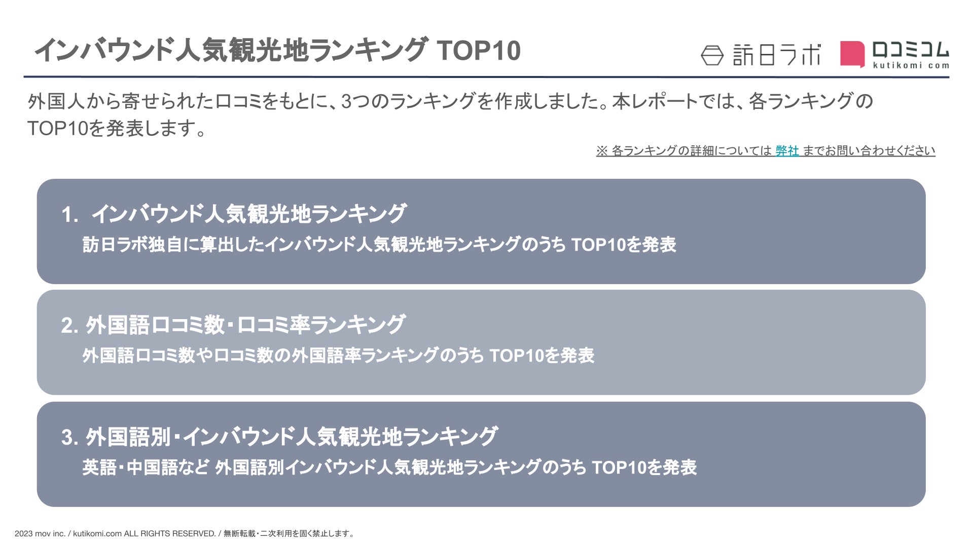 3つのインバウンドランキングを発表
