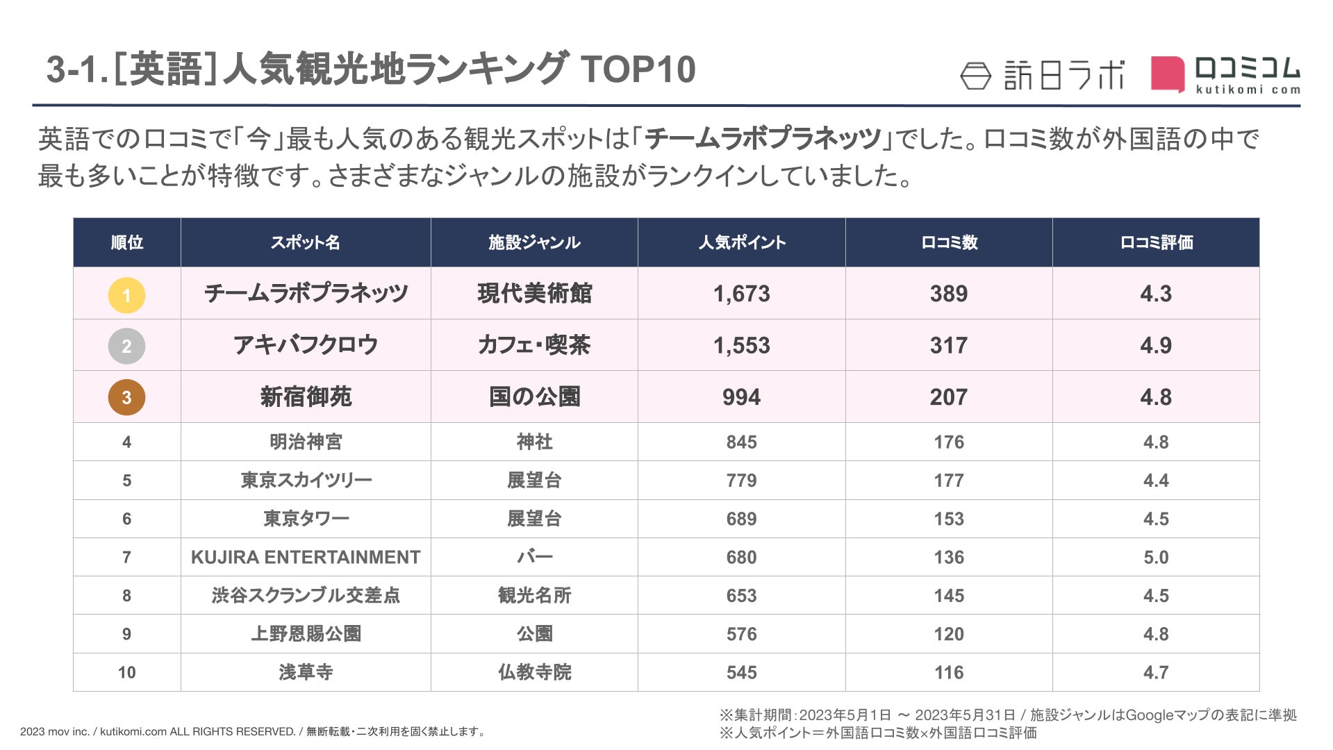 ・外国語口コミ数&口コミ率 TOP10 のスポット