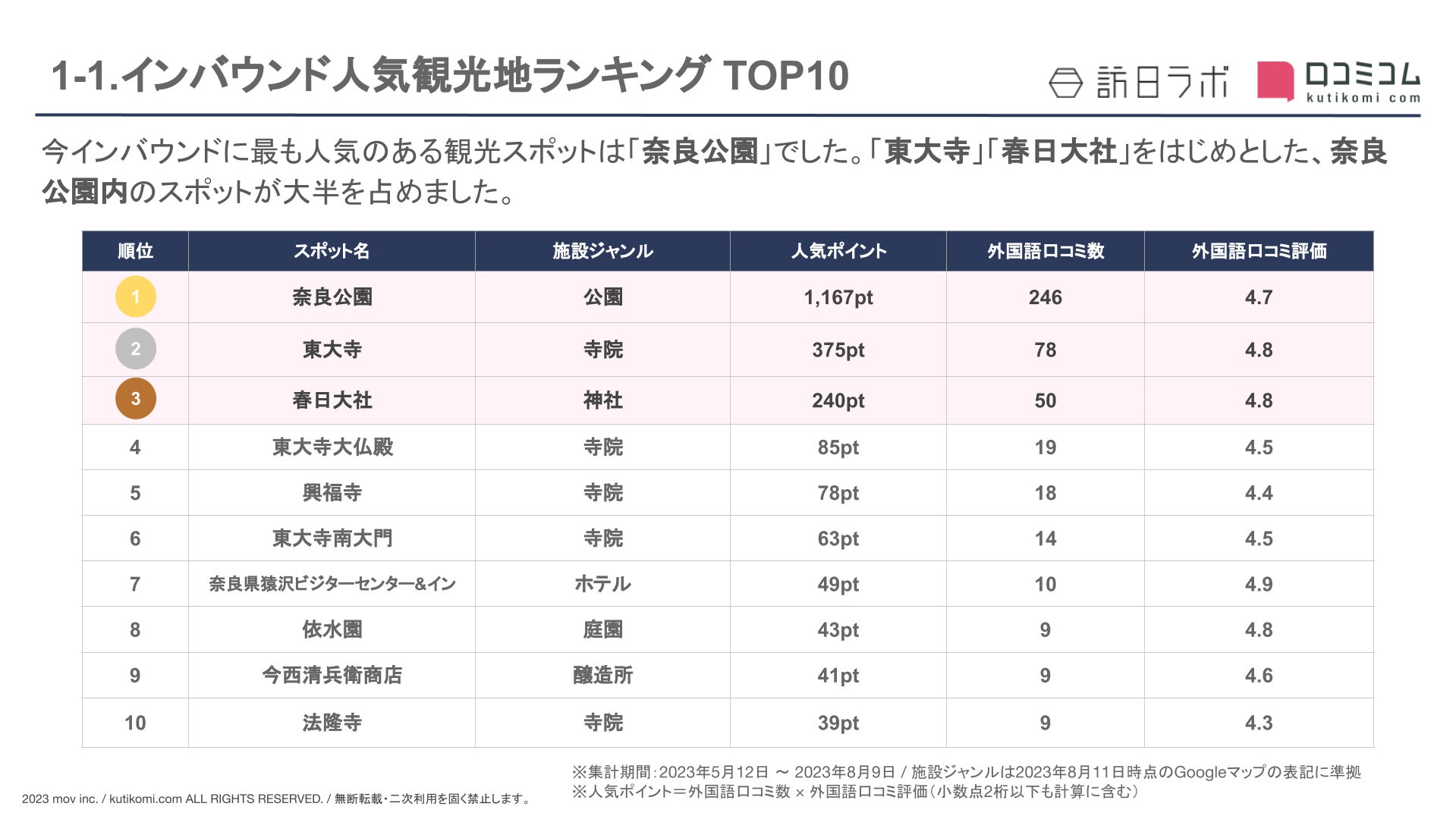 【独自調査】インバウンド人気観光地ランキング奈良編:コロナ後 最新の訪日客の支持を集めたスポットTOP10を発表