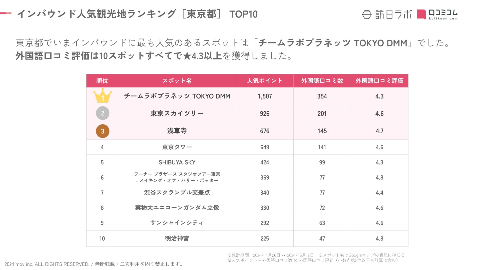 <インバウンド人気観光地ランキング TOP10[東京都編]>