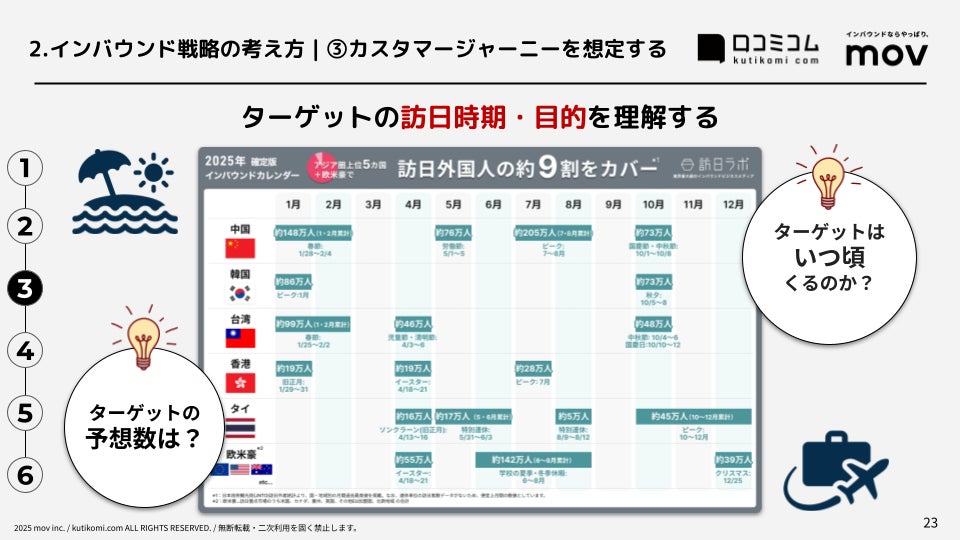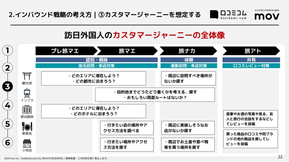 業界最大級のインバウンドビジネスメディア「訪日ラボ」及び 店舗向け集客一元化プラットフォーム「口コミコム」を運営する株式会社mov(代表取締役:渡邊 誠、本社:東京都渋谷区、以下mov)は、2024年のインバウンド市場の概況と、効果的なインバウンド戦略の考え方をまとめたお役立ち資料「インバウンド2024概況とインバウンド戦略の作り方」を公開しました。