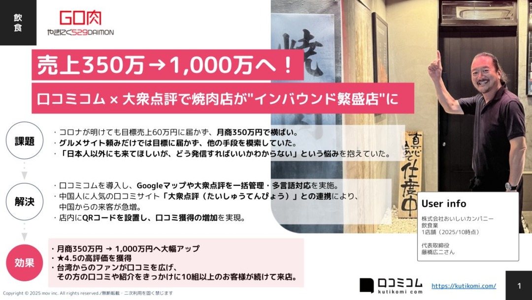 口コミコム × 大衆点評で焼肉店が”インバウンド繁盛店”に